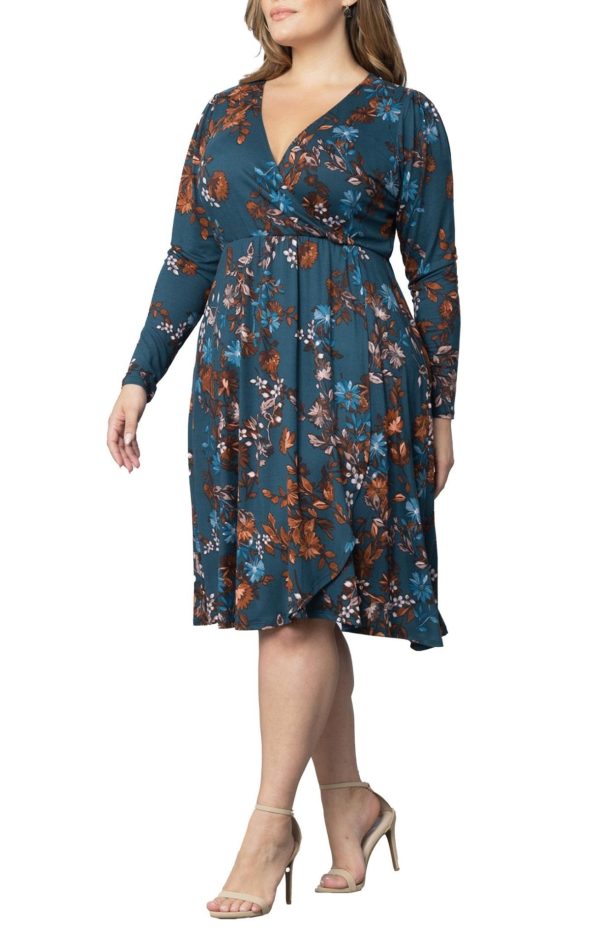 The Aster Faux Wrap Dress delivers the elegant appeal of a classic wrap design with modern comfort. This beautifully tailored plus size dress creates a flattering hourglass silhouette that enhances your natural curves. The elastic waist detailing provides comfortable shaping, while the sophisticated V-neck and fitted long sleeves offer versatile styling options for any occasion.