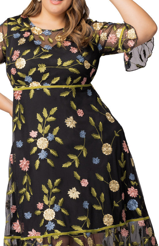 This stunning Wildflower Embroidered Floral Mesh Dress features elegant velvet trim accents, graceful flounce details, and a flattering A-line silhouette with fully lined bodice and skirt. Perfect for cocktail parties, semi-formal events, weddings, and any special occasion that calls for sophisticated style. Available in women’s plus sizes for exceptional comfort and fit.