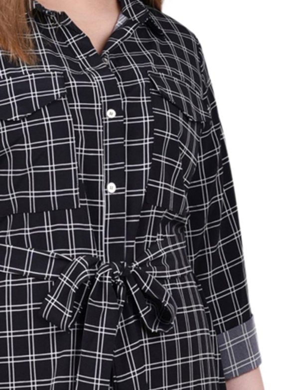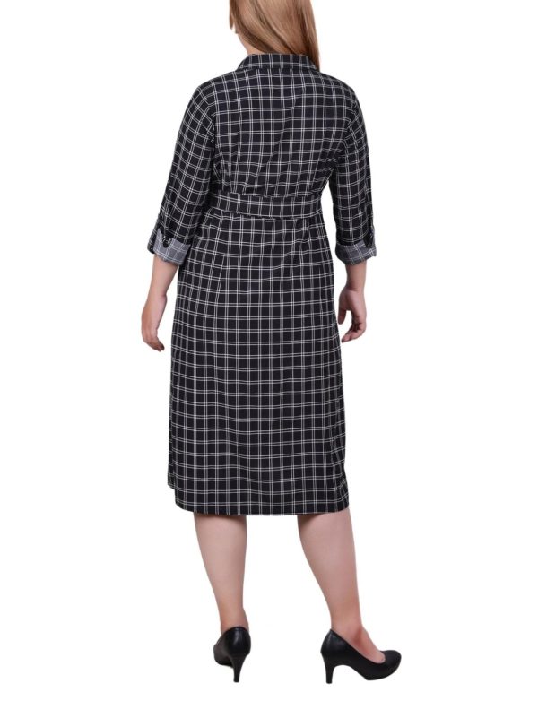 Black Gridview 3/4 Roll Tab Sleeve Belted Shirtdress – Plus | Women Dressbarn Dresses