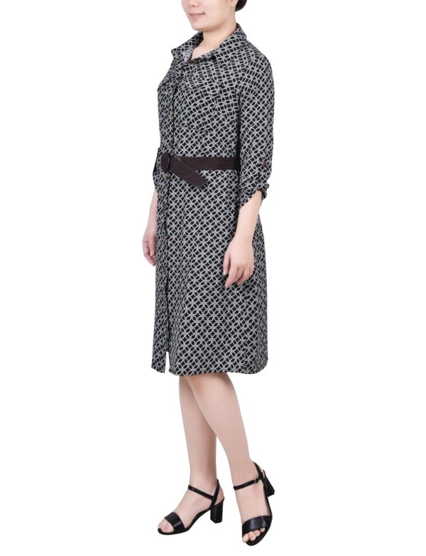 Doeskin Black Allie Belted Roll Tab Zip Front Shirtdress – Petite | Women Dressbarn Dresses