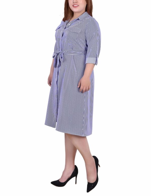 You’ll always be in style with this classic shirt-dress with its full button front and self belt.