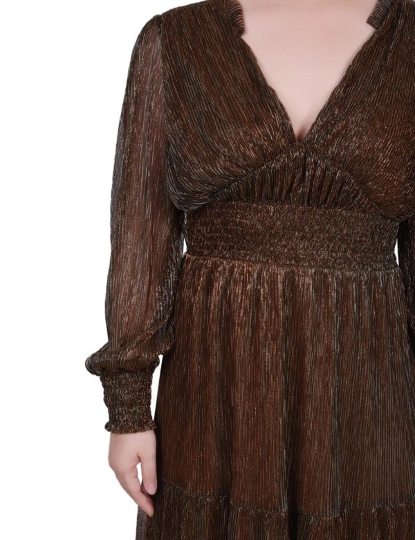 This elegant long sleeve plisse mesh dress is crafted with subtle lurex detail to give it an exclusive, sophisticated look. Wear it to evening occasions for a timelessly chic style.