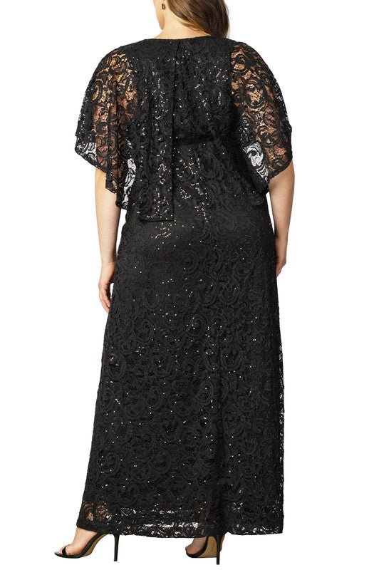 Command attention in our stunning plus size Celestial Cape Sleeve Gown. Expertly crafted with shimmering sequin lace detailing, you’ll radiate confidence and elegance at any special occasion.