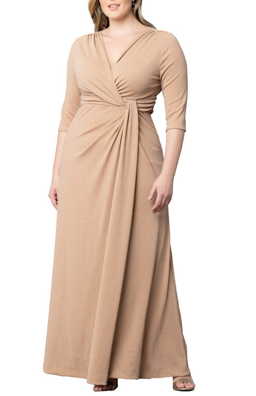 The Romanced by Moonlight Long Gown is an elegant floor-length dress with cinching at the waist, a gracefully sweeping skirt, and classic 3/4 length sleeves. The Midnight Star and Evening Star colors have a glitter-treated fabric that catches the light beautifully. Available in plus sizes.