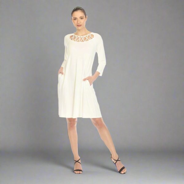 This effortlessly chic go-to dress features a stylish criss-cross neckline, flattering three-quarter sleeves, and a graceful trapeze silhouette crafted from premium fabric that feels incredibly soft against your skin with perfect drape. Perfect for your next casual outing or easily dressed up for more formal occasions. Versatile enough to pair with both sandals and heels.