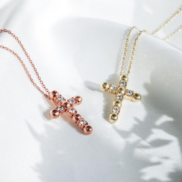 Timeless elegance meets modern spirituality. The Delilah Cross Pendant showcases exceptional craftsmanship with premium European crystals that catch the light beautifully. This exquisite piece features luxurious 18K gold over sterling silver construction, presented in special packaging infused with spiritual significance from its Holy Land origins.