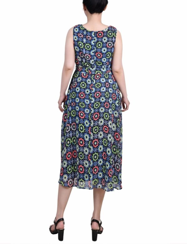 This charming sleeveless peasant dress features a flattering fit-and-flare silhouette with a versatile midi length that transitions effortlessly from casual daytime outings to elegant evening occasions. The adjustable belted waist creates beautiful definition while the lightweight chiffon fabric offers graceful movement and comfort throughout your day.