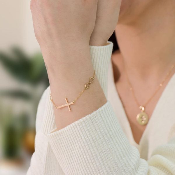 Experience timeless elegance with this beautifully crafted bracelet that combines meaningful symbols of faith and eternal love in one versatile piece perfect for everyday wear.
