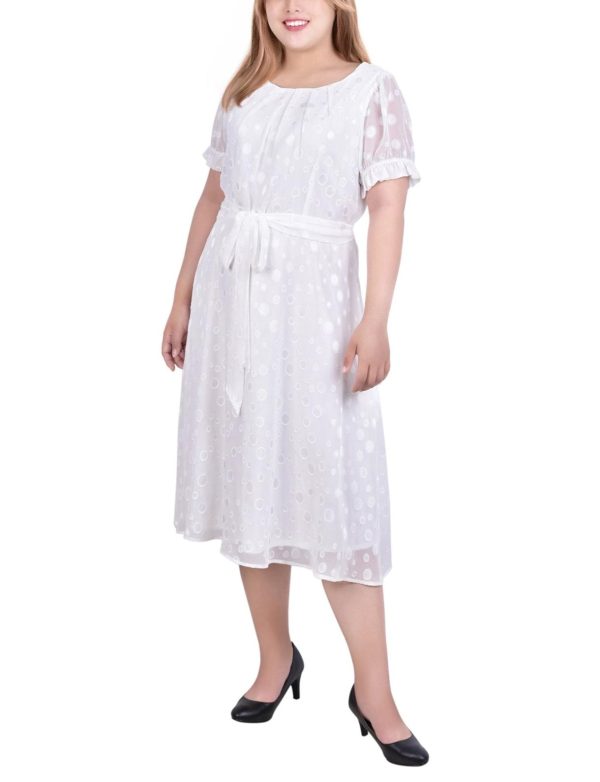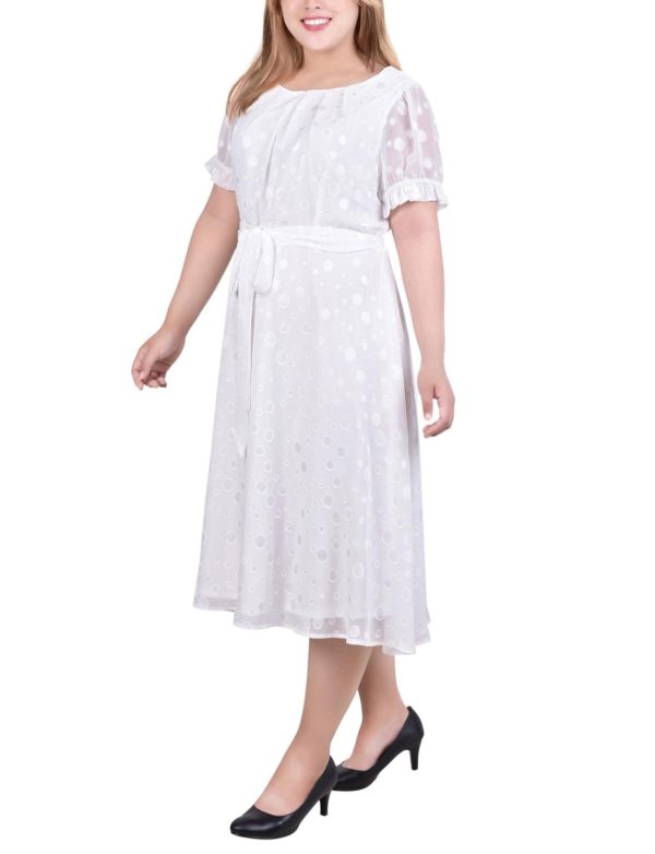 This charming Swiss dot midi dress features an adjustable tie waist and beautifully ruched sleeves, making it the perfect choice for special occasions and elegant everyday wear.