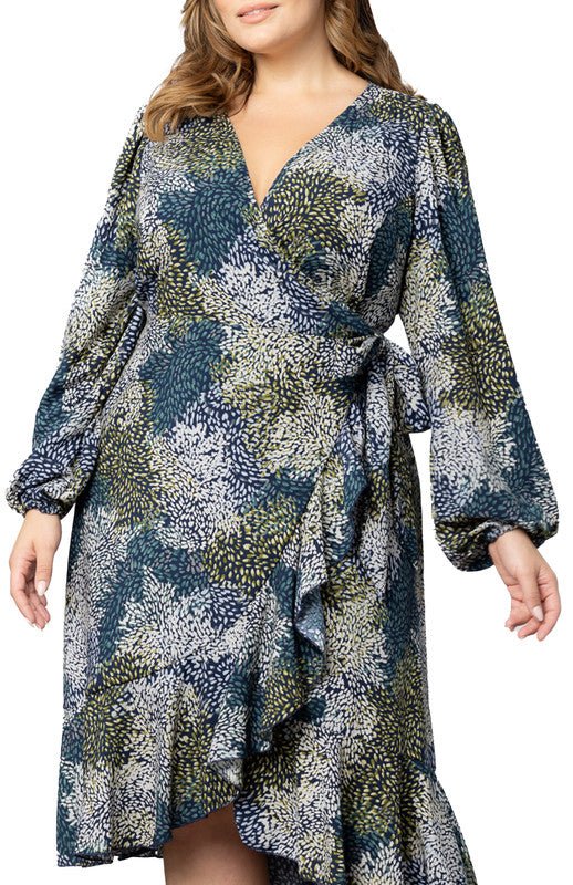 Our Plus Size Julia Long Sleeve Wrap Dress combines effortless elegance with versatile sophistication. This midi length dress transitions seamlessly from professional settings to special occasions. Featuring a flattering crossover V neckline, graceful cascading flounces, and statement lantern sleeves. Designed exclusively for women’s plus sizes with premium attention to fit and comfort.