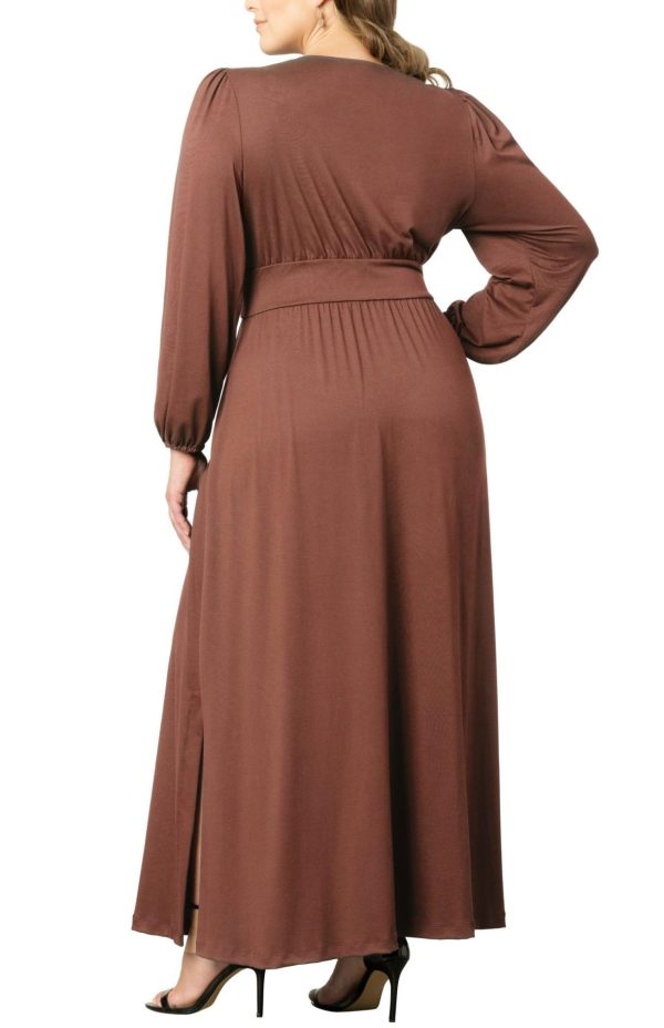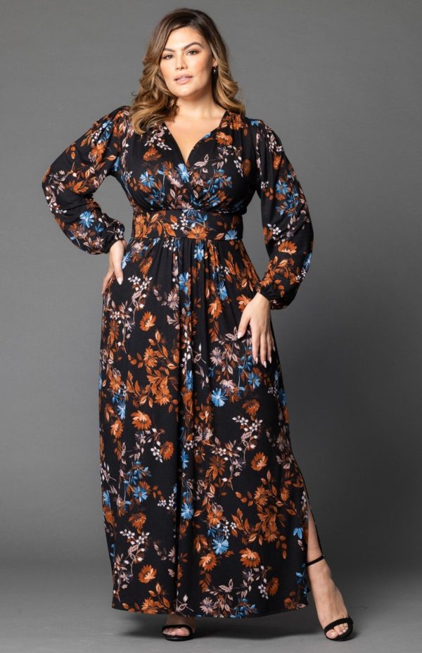 The Kelsey Long Sleeve Maxi Dress delivers timeless elegance with exceptional comfort. This beautifully designed plus size maxi dress combines sophisticated style with everyday wearability in a soft, substantial stretch jersey fabric that moves with you. It features an empire waist for flattering silhouette definition, a gracefully flowing A-line skirt, a chic V-neckline, tailored long cuffed sleeves, and practical side slits for easy movement.