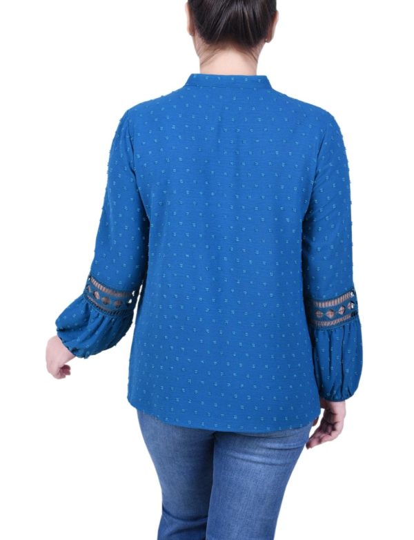 Elevate your everyday style with this beautifully crafted blouse featuring exquisite crochet and lace accents from our NY Collection. The delicate textured fabric offers effortless sophistication that transitions seamlessly from professional office settings to casual outings with friends.