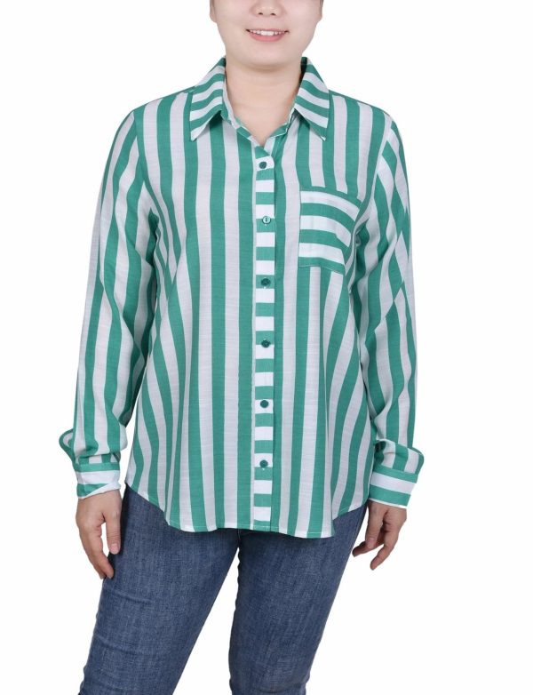 Long Sleeve Striped Blouse – Petite | Dressbarn Tops