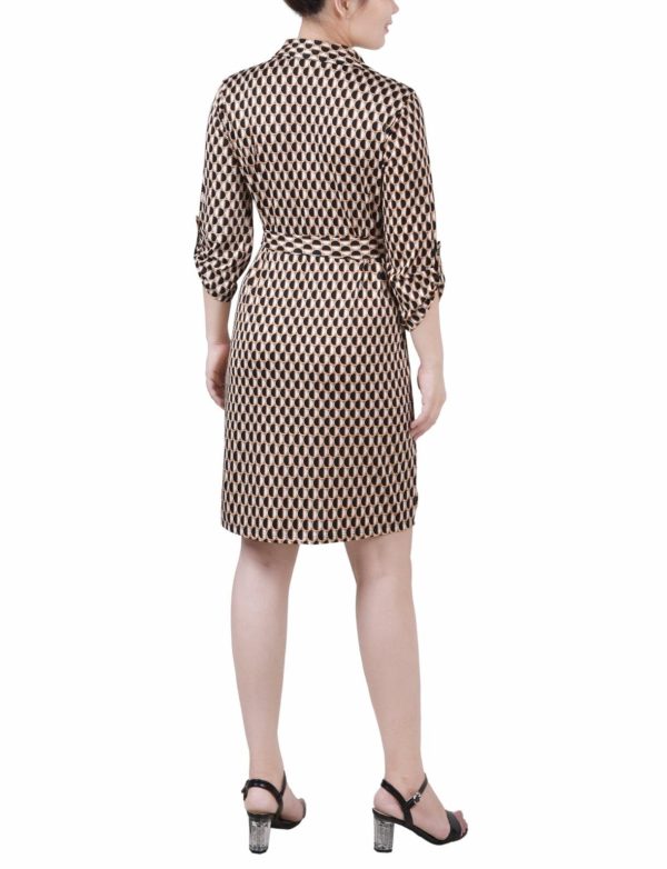 Meerkat Jen Dot 3/4 Roll Tab Sleeve Collared Dress – Petite