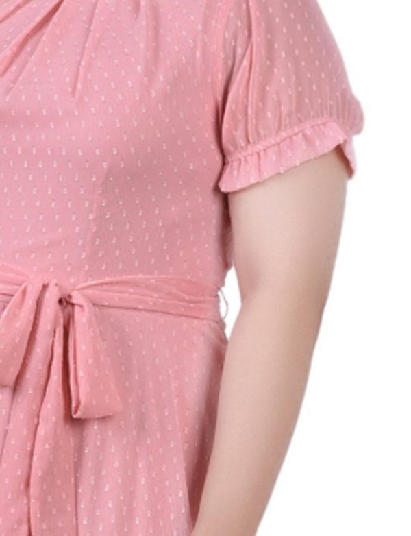 Elevate your special occasion wardrobe with this beautifully crafted Swiss dot dress, featuring an adjustable tie waist and elegantly ruched sleeves for a flawless fit that flatters your curves.