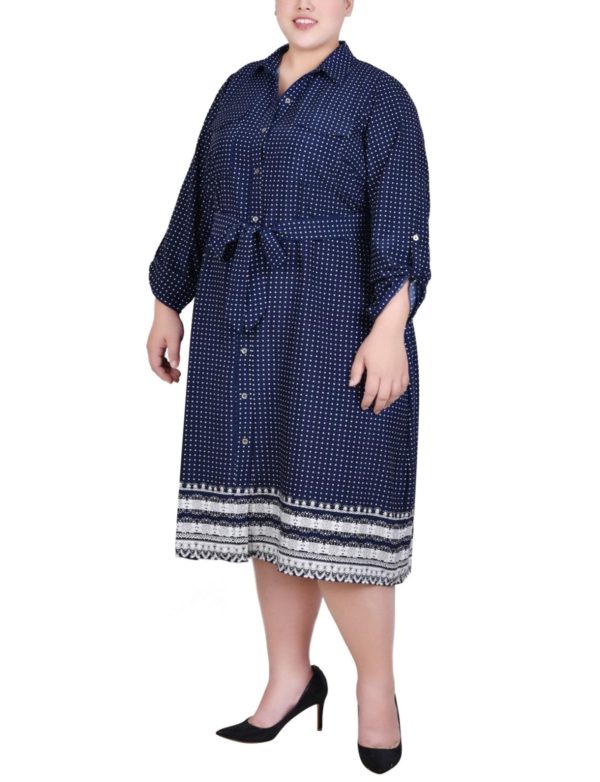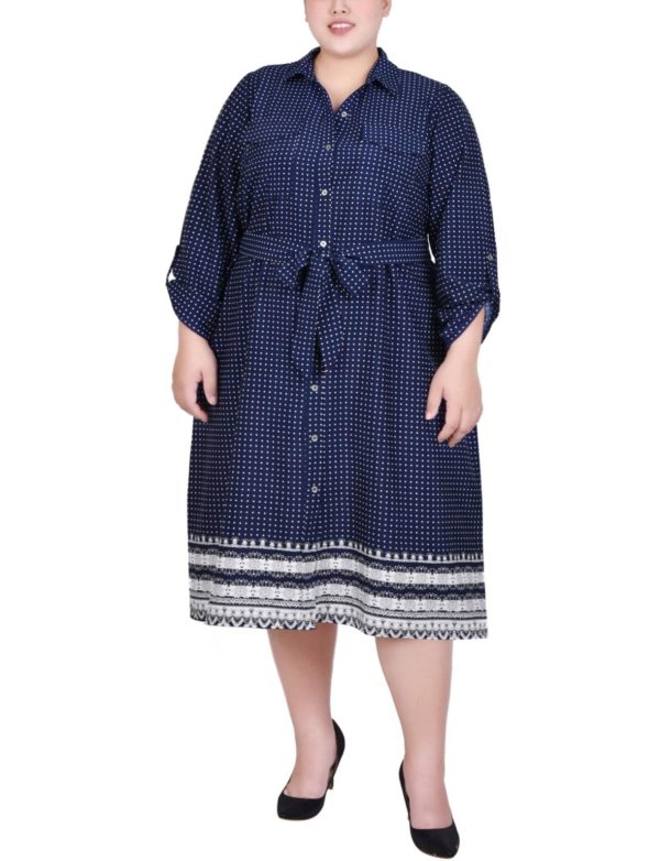 You’ll always be in style with this classic shirt-dress with its full button front and self belt.