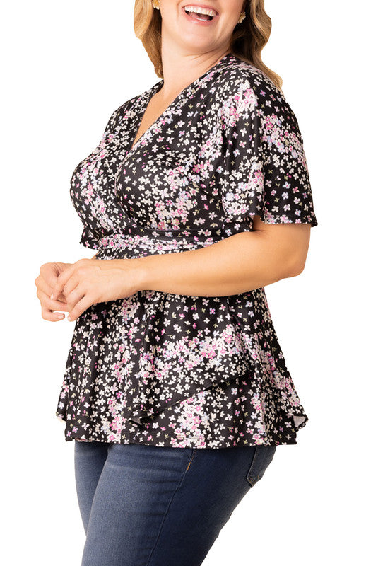 This beautifully designed plus size peplum top features a ruched waistband at the empire waist and a flattering surplice crossover V-neckline that lets you customize your coverage. The elbow-length dolman sleeves provide exceptional comfort and ease of movement. Available in women’s plus sizes for the perfect fit.
