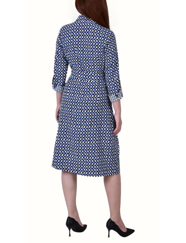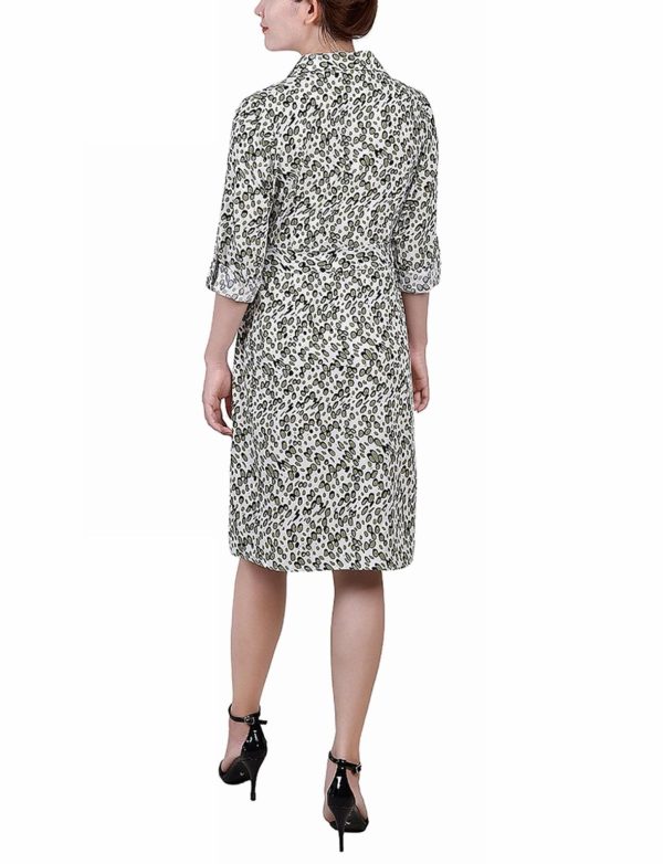Petite 3/4 Length Roll Tab Sleeve Belted Shirtdress | Dressbarn