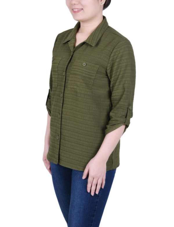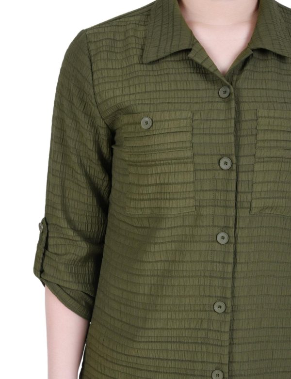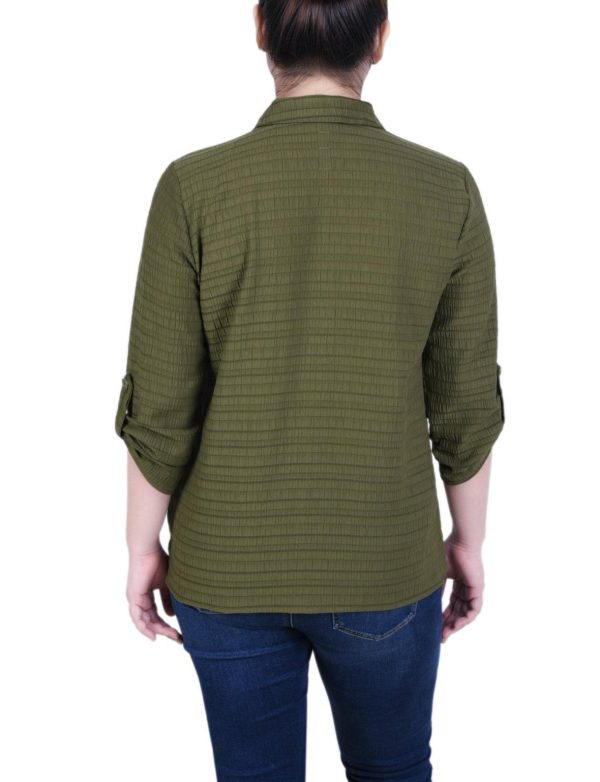 Elevate your casual wardrobe with this beautifully crafted jacquard tunic that pairs perfectly with your favorite jeans or leggings. The versatile roll tab cuffs add a touch of sophistication to this effortlessly stylish top.