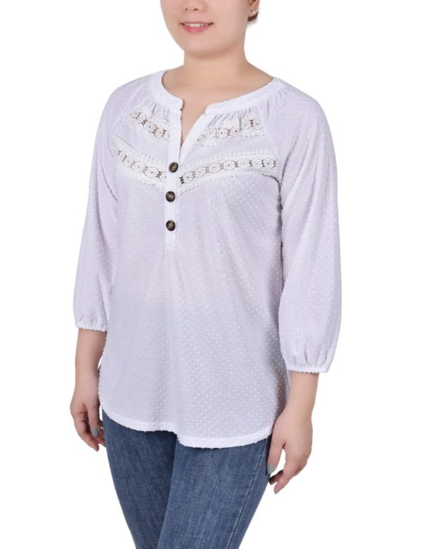 Petite 3/4 Sleeve Swiss Dot Knit Top