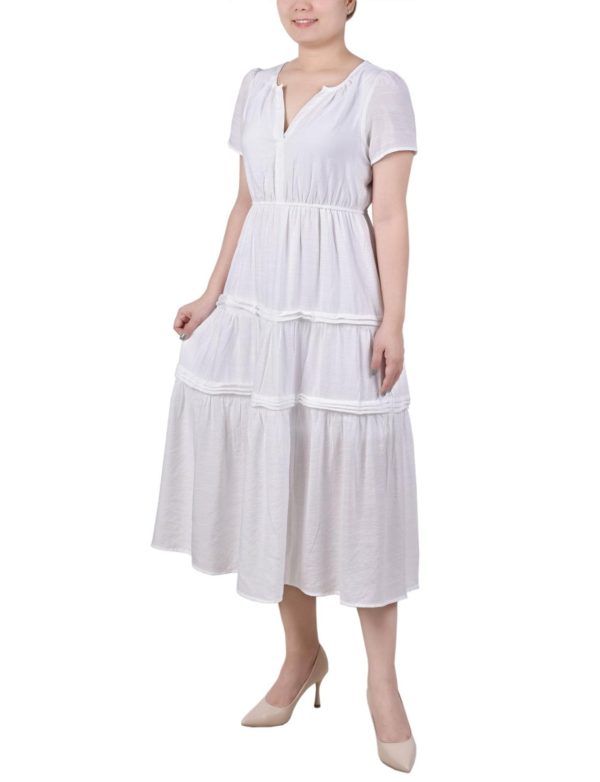 This effortlessly chic ankle-length dress from our NY Collection carries you through the season with sophisticated style. The comfortable elastic waist and graceful wide flounce design create an incredibly easy-to-wear silhouette that moves beautifully with you.