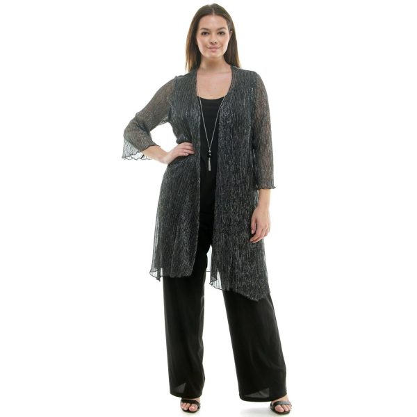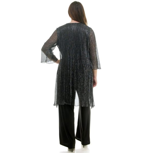 2Fer Elastic Waist Pant Set w/ Detachable Necklace in Solid Moonlight Hologram with Solid Moss Crepe, designed for effortless elegance and standout style at special occasions.