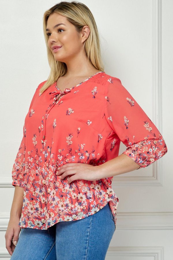 Plus Size 3/4 Sleeve Beaded Tie Front Blouse