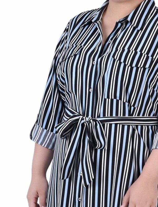 Black Red Circle Chain 3/4 Roll Tab Sleeve Belted Shirtdress – Plus | Women Dressbarn Dresses