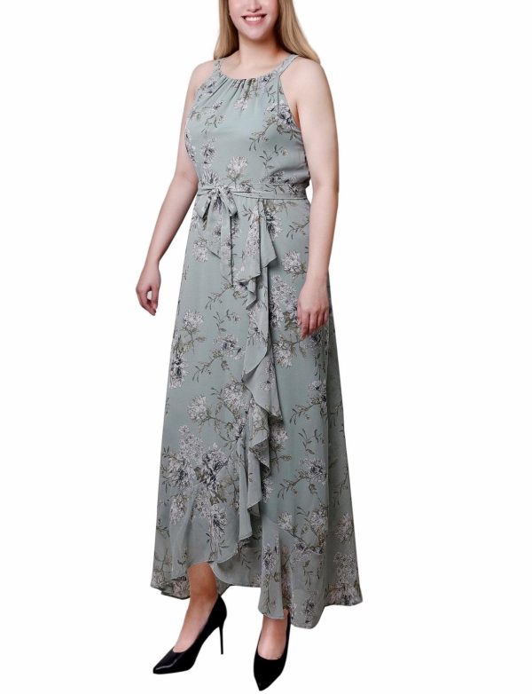 Make a stunning entrance at any special occasion with this elegant Grecian-inspired halter neckline chiffon maxi dress, designed to flatter your petite frame with graceful sophistication.