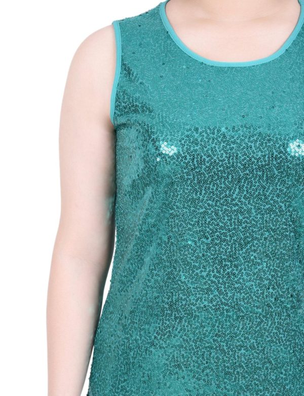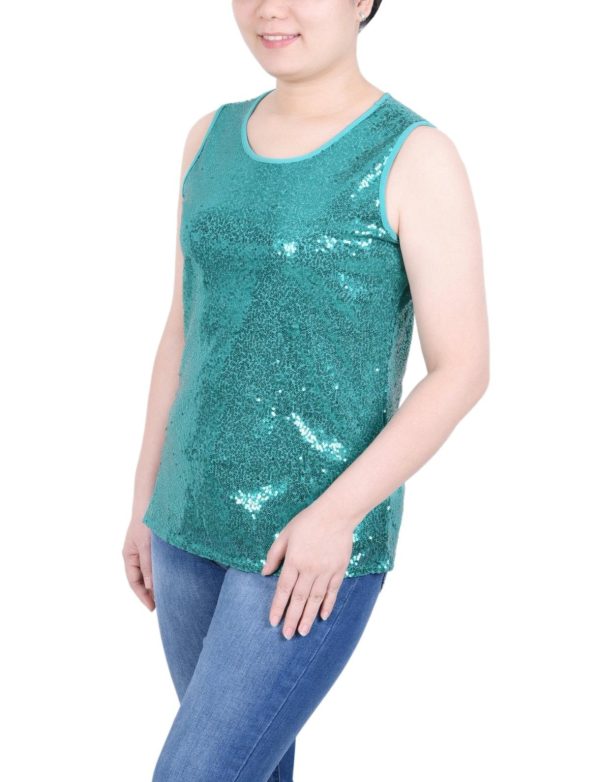 Sleeveless Sequined Tank Top with Combo Banding – Petite