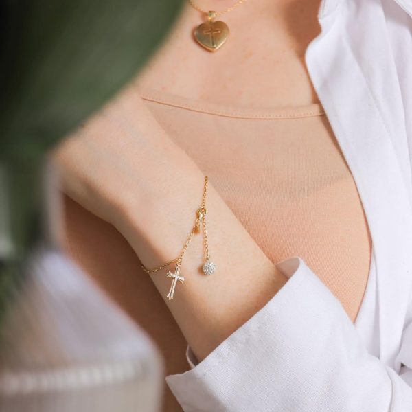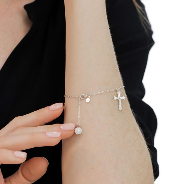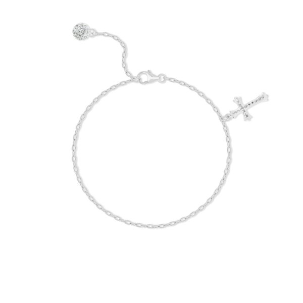 Expertly crafted diamond-cut cross charm bracelet featuring a brilliant top-grade European crystal ball. The Splendid collection delivers timeless elegance with meaningful spiritual significance.