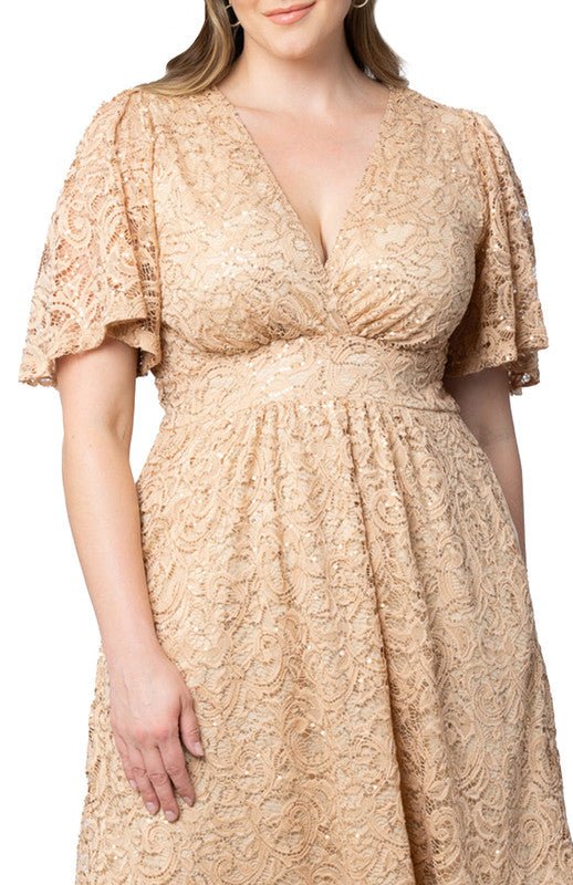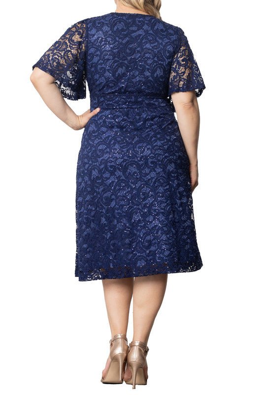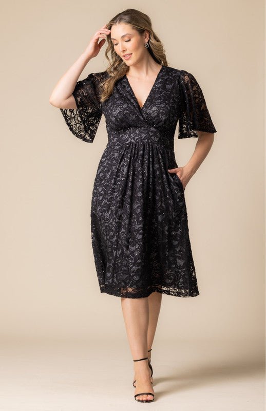 Make a dazzling entrance at your next special event with our Starry Sequined Lace Cocktail Dress. This stunning party dress showcases a universally flattering surplice neckline, feminine flutter sleeves, and an elegant A-line silhouette that moves beautifully. The ultimate conversation starter? This sparkling dress features the perfect surprise – functional side pockets!