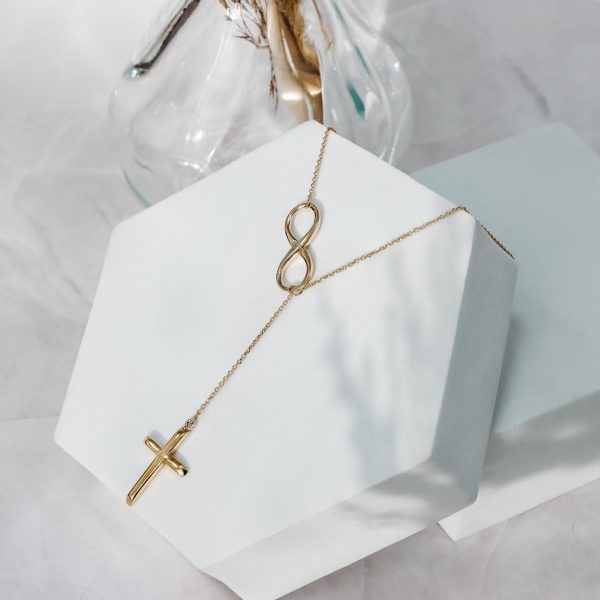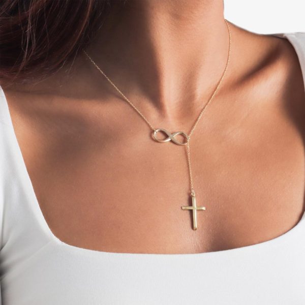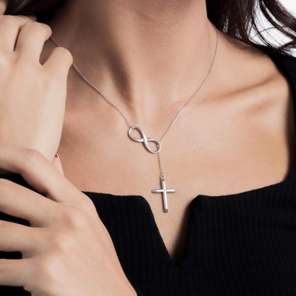 Discover our exquisite lariat necklace collection featuring this beautifully crafted infinity and cross design. This elegant piece makes a stunning addition to your jewelry wardrobe, offering a meaningful symbol of eternal love and faith that complements your personal style with grace and sophistication.