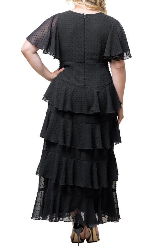 The Tour de Flounce Evening Gown is a special occasion formal dress with gorgeous flounce details. This elegant floor-length evening dress is perfect for spring or summer formal events, cocktail parties, and is the perfect choice for a wedding guest dress or mother of the bride / groom gown.