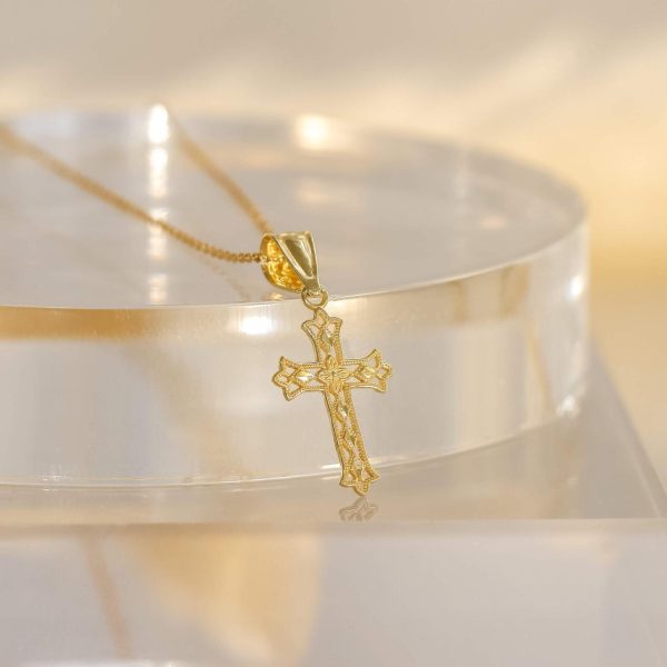 An exquisitely detailed Orthodox-style cross pendant that combines timeless elegance with spiritual significance.