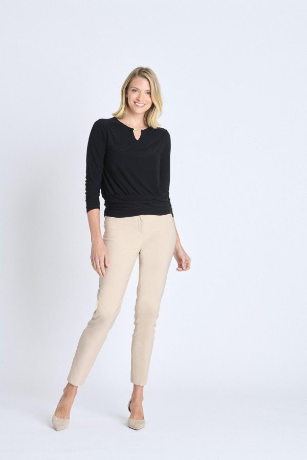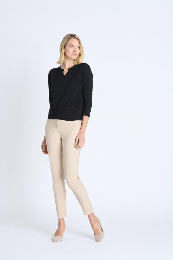 Discover the perfect blend of sophistication and versatility with our Long Sleeve V-Neck Bar Trim Banded Top in Black. This essential piece features a contemporary bar detail at the neckline and a flattering banded hem that creates a polished silhouette perfect for any occasion.