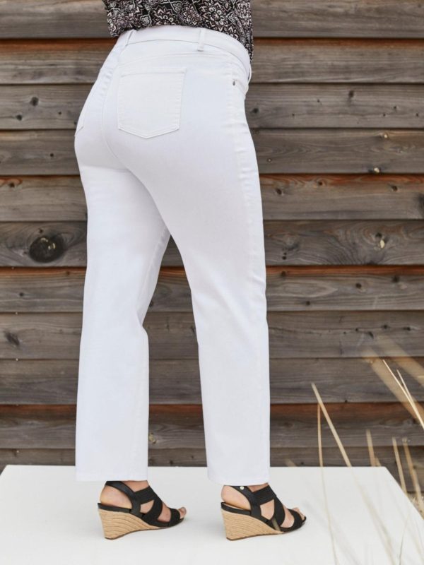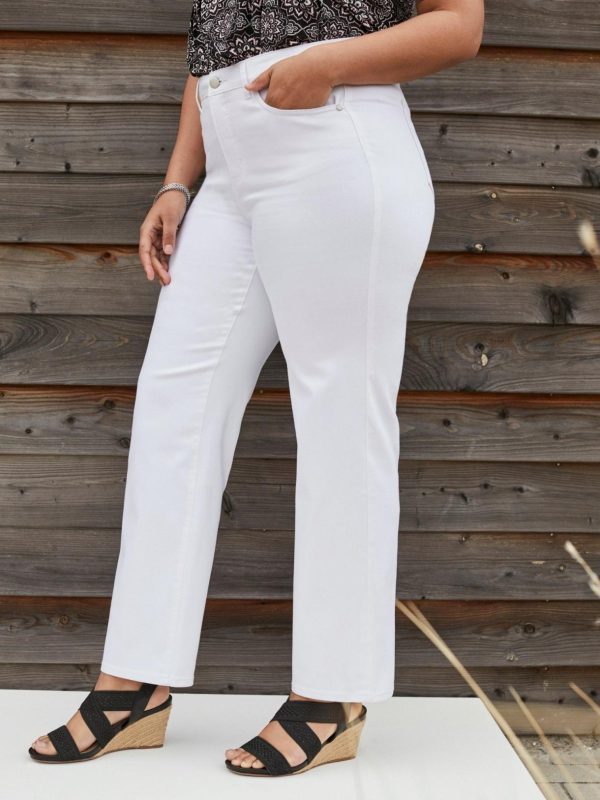 Elevate your everyday wardrobe with these essential straight-leg jeans. Designed with a flattering fit that moves with you, these versatile jeans pair effortlessly with your favorite tops for both casual outings and relaxed days at home. Featuring functional 5-pocket construction and subtle distressed detailing, they deliver both style and practicality in one comfortable, easy-to-wear package. Available in classic blue washes and crisp white.