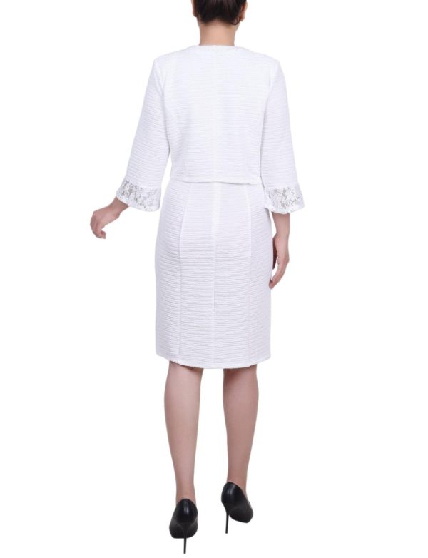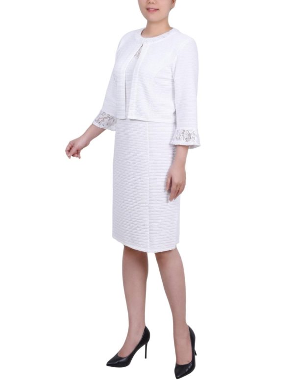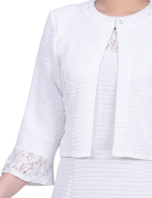 A dress set that looks amazing, with fashionable lace and sequin details for an elegant touch. Both pieces feature beautiful silhouettes that flatter your figure, plus 3/4 bell sleeves and a sweetheart neckline for a delightful design.